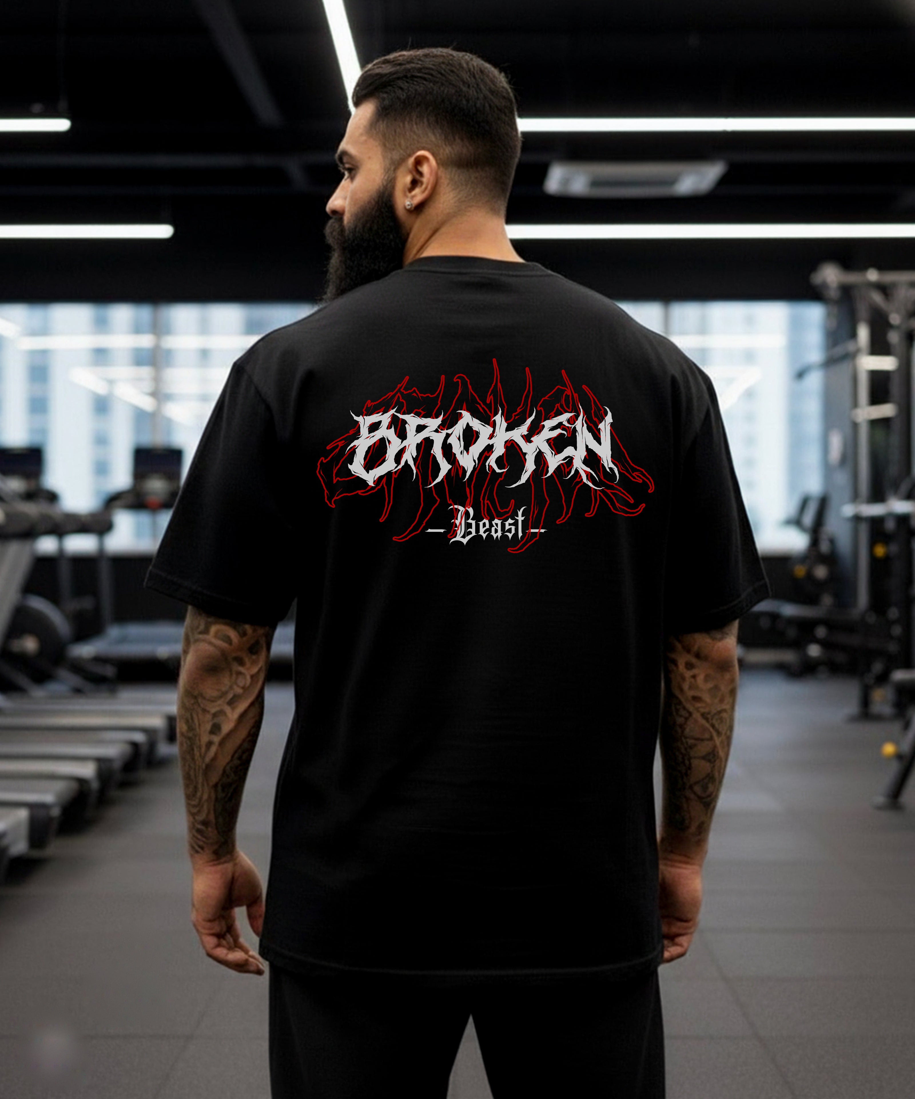 Embrace the grind with this premium wear tee. The Broken Beast graphic captures the raw, unrelenting intensity of pushing past your limits, a symbol of savage dedication and ultimate strength.